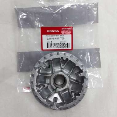 RUMAH ROLLER PCX NEW LOKAL 150 ORI ASLI AHM 22110-K97-T00. Dengan niat untuk mengangkat akselerasi pulley atau rumah roller Honda PCX 160 diganti pakai part bawaan milik Yamaha Aerox 155. Kalau tarikan awal mau lebih ngacir pakai roller vario 150 saja yang punya berat 155 gram.
